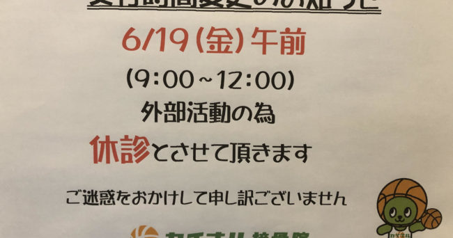8/29(木)午前休診(15:00からは通常受付)